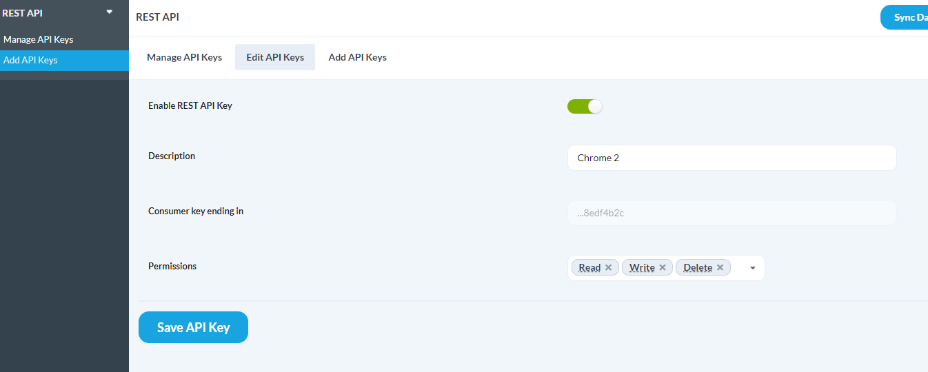 All settings saved in the API section.