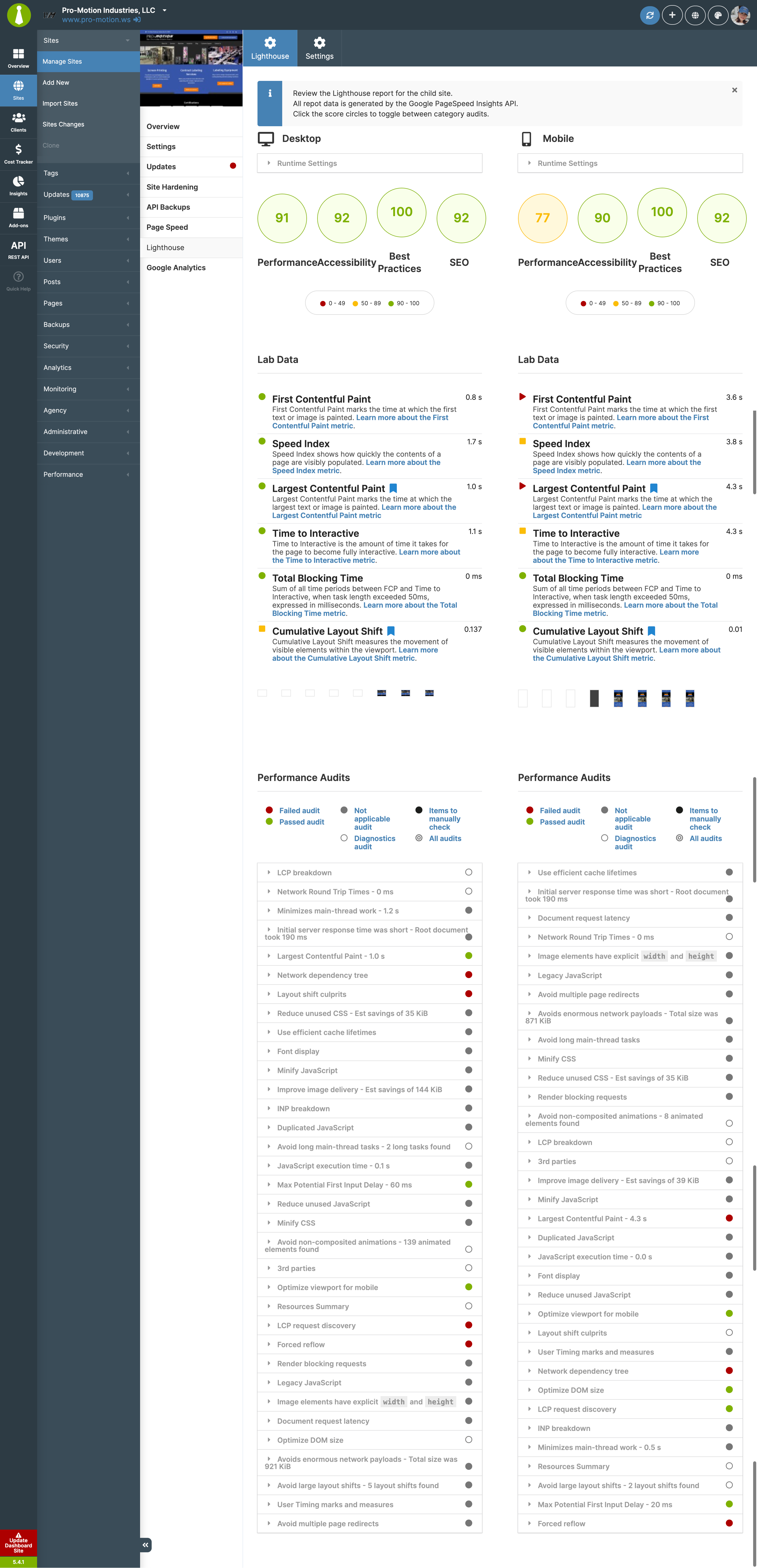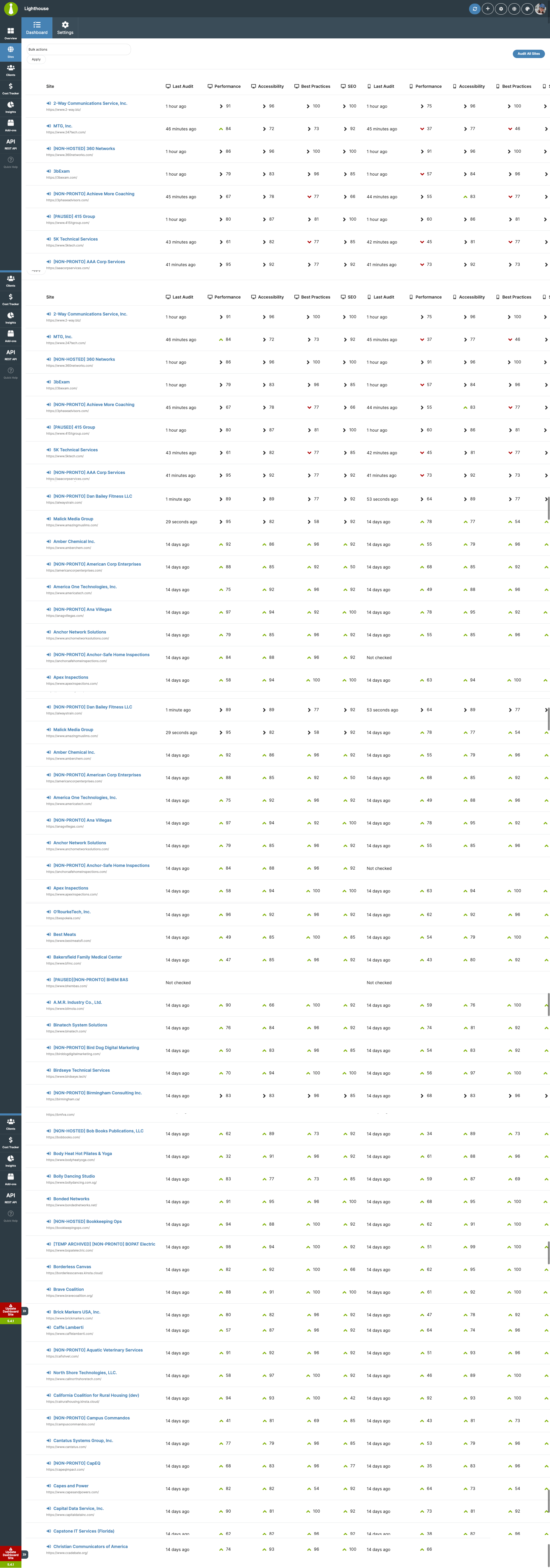 I triggered an “Audit All Sites” command via the MainWP REST API for my network of approximately 900 Child Sites. Since running this API call, the Lighthouse Extension tab in my dashboard shows only a blank white screen.