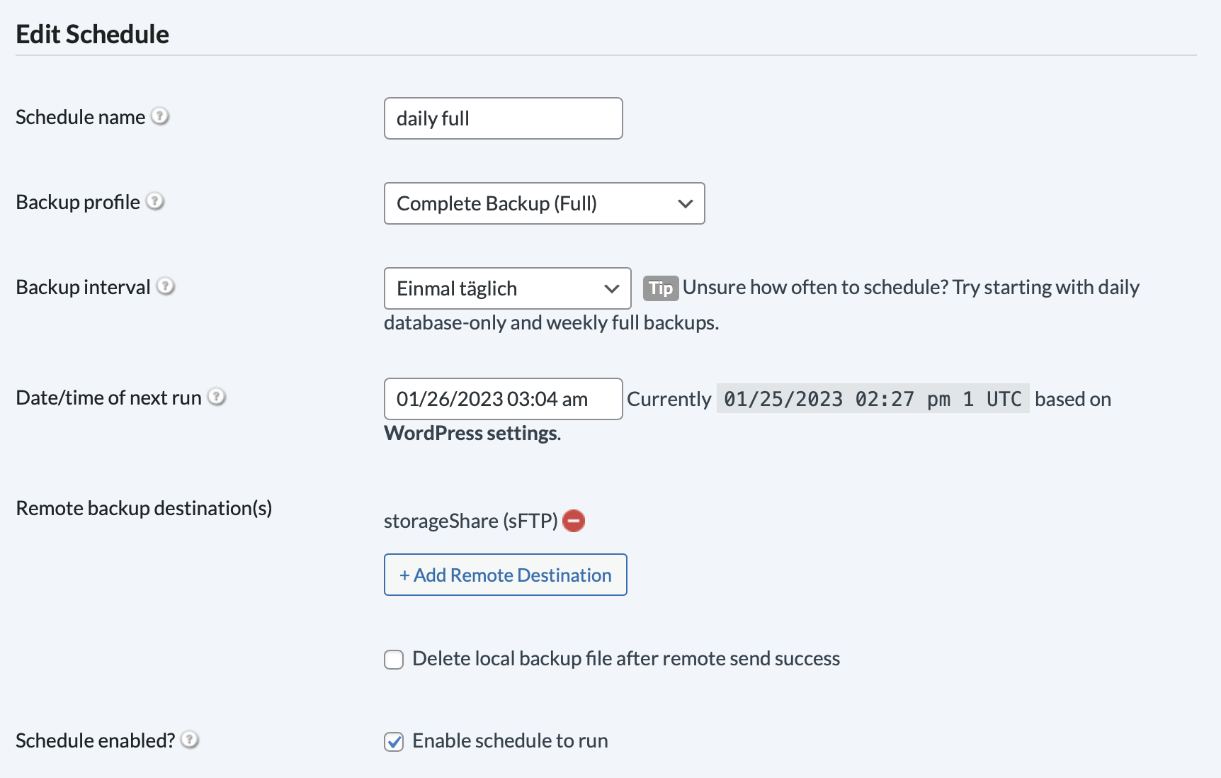 I am referring to remote destinations, sftp to be precise.