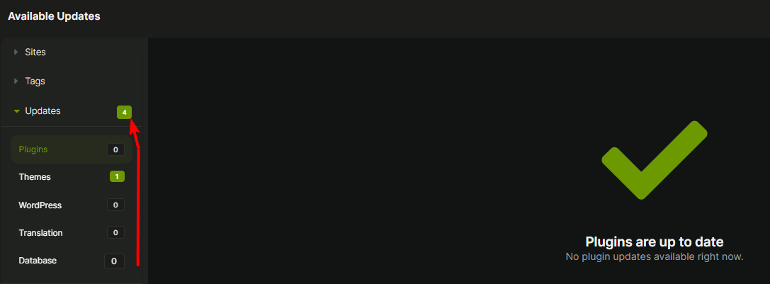 After completing the majority of the available updates, I noticed that the number next to the parent “Updates” stopped updating, showing an incorrect total of available updates. The number remains the same even after I refreshed the page.