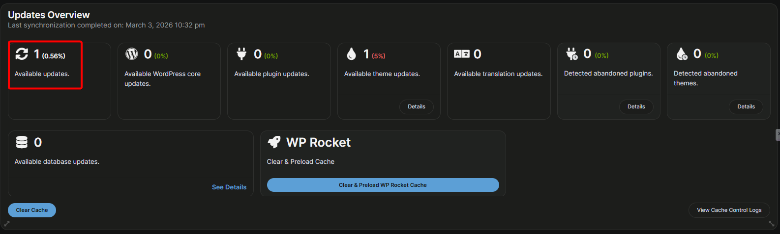 2/ Not sure why this is relevant? I just showed you that the overview page is showing only 1 available update. In any case, I’ve had my dashboard open since I posted this Bug, and now I just noticed that the total available updates is showing the correct number. I did nothing other than go to the Add-ons to confirm that I did not have the Staging add-on installed.