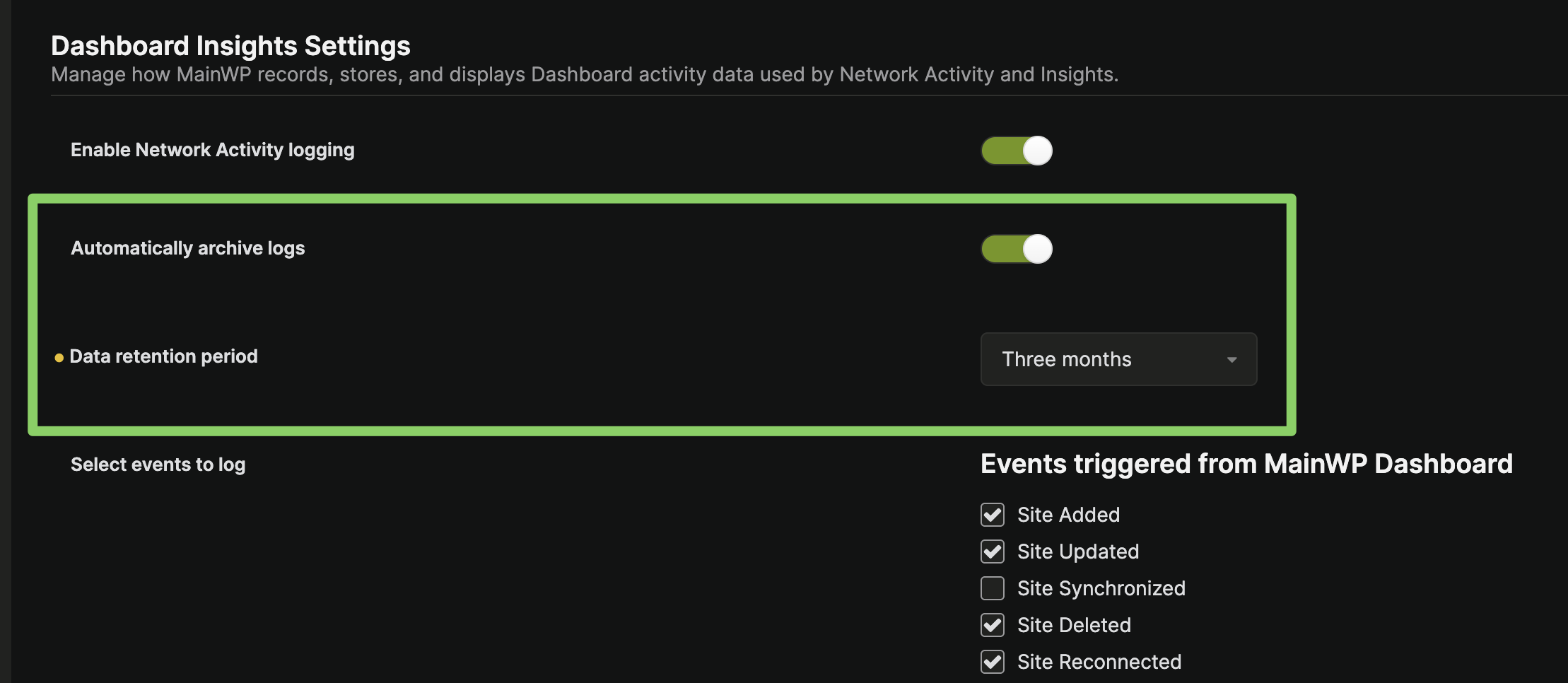 Note that once you enable “Automatically archive logs”, it can take some time for all logs to move to the Archive table if they are in the hundreds of thousands.