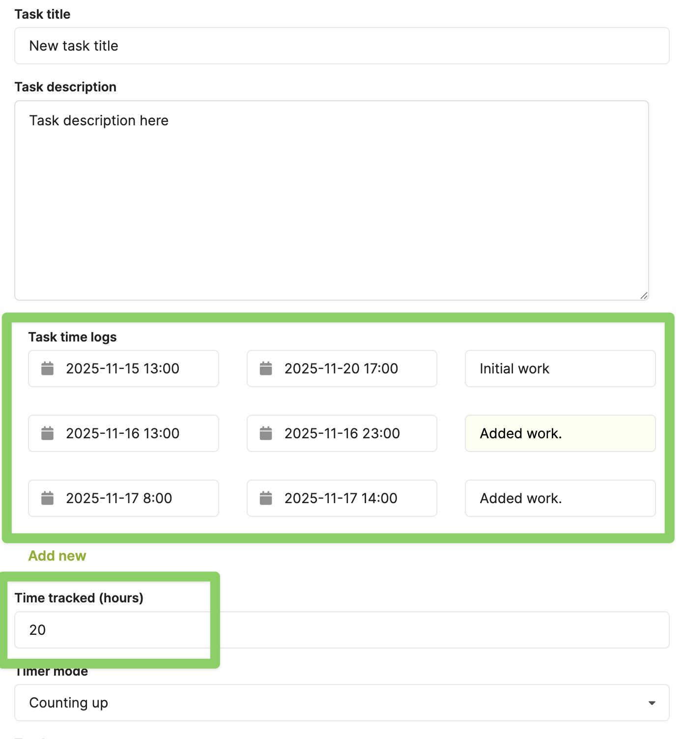 You can even add time logs if you want to specify on which days you worked and for how many hours, but this is optional.