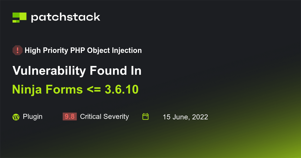 The patched version of Ninja Forms is 3.6.11.